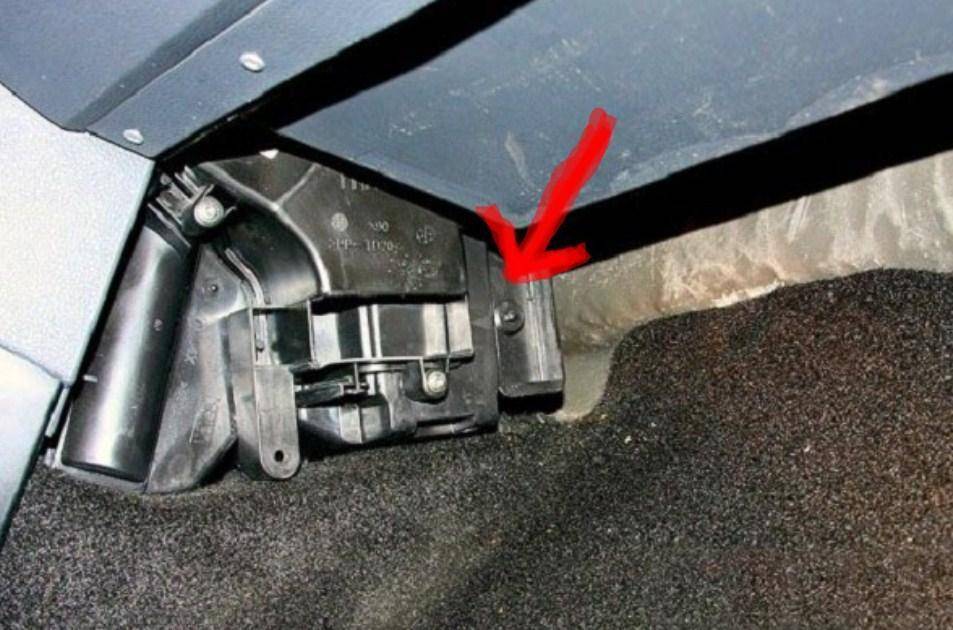 - Под бардачком найдите место установки фильтра с заглушкой.