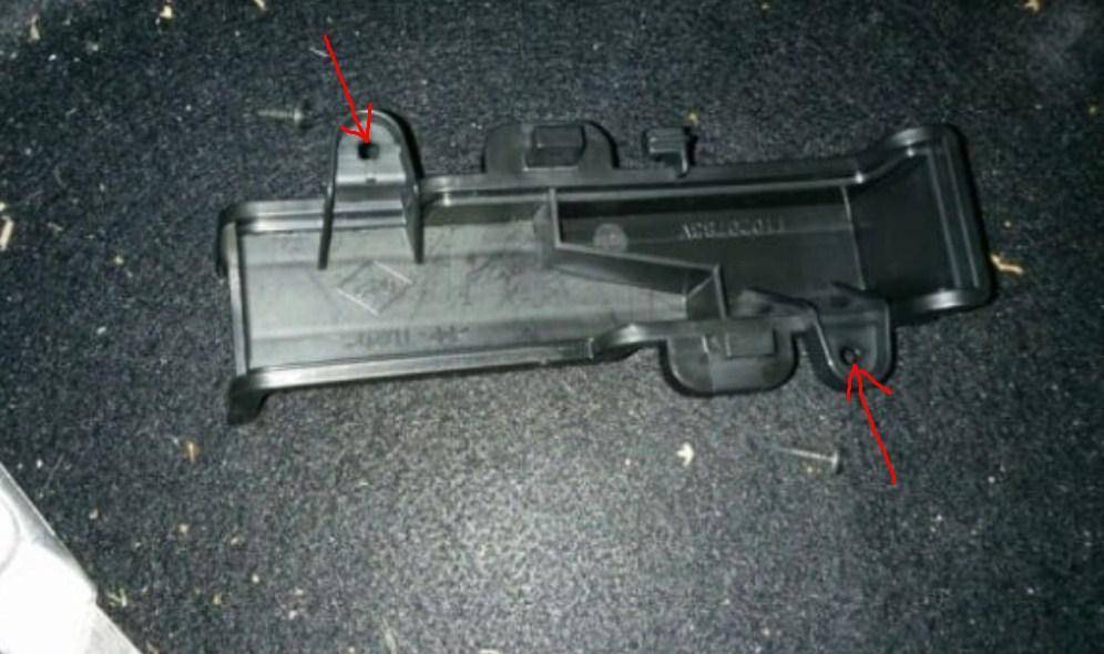 - На первом поколении машин нажмите на выступ-защелку в нижней части заглушки. Далее наклоните ее вверх и выведите из зацепления с корпусом отопителя. На втором поколении – отверните отверткой пару саморезов.