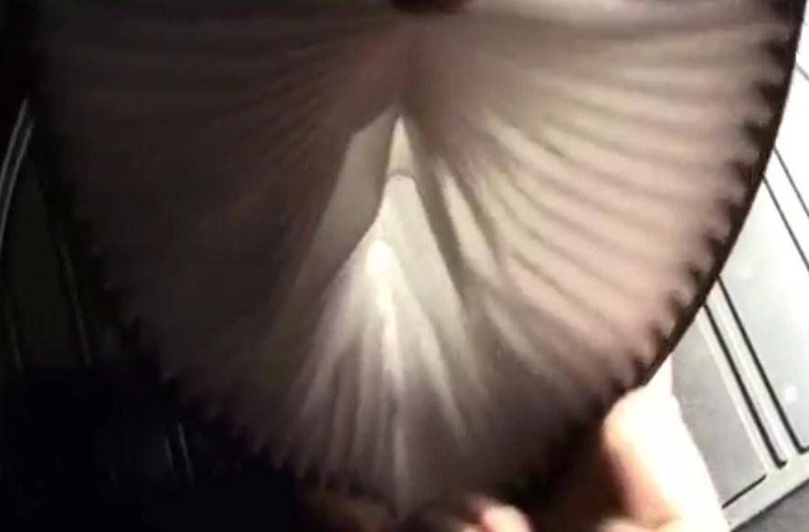 Устанавливаем новый салонный фильтр, сначала верхнюю часть, потом нижнюю, сжимая его задний конец следующим образом:
