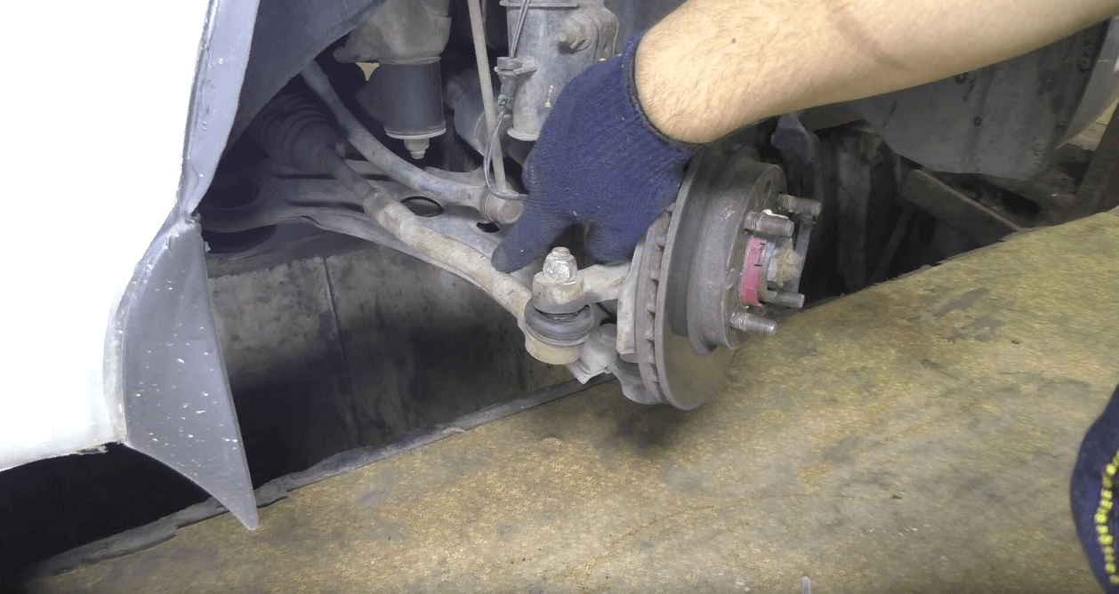 Палец рулевого наконечника начал проворачиваться, теперь его нет возможности откручивать, так как снизу не за что взяться, чтобы придержать сам болт рулевого наконечника.