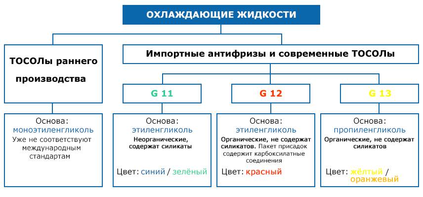 Единых стандартов для антифриза не существует, но используется классификация по составу, созданная VW: G11, G12 и G12 plus, G13.