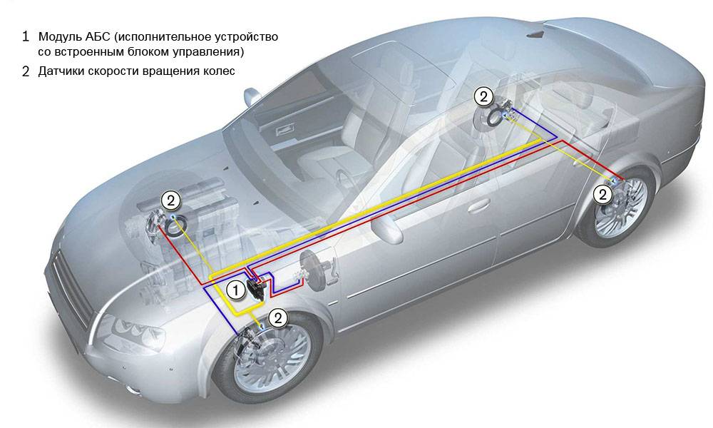 Смысл работы заключается в том, чтобы держать колеса на грани блокировки давая возможность прокручиваться и замедлять их ход одновременно, регулируя и распределяя тормозное усилие по колесам, на которых установлены датчики.
