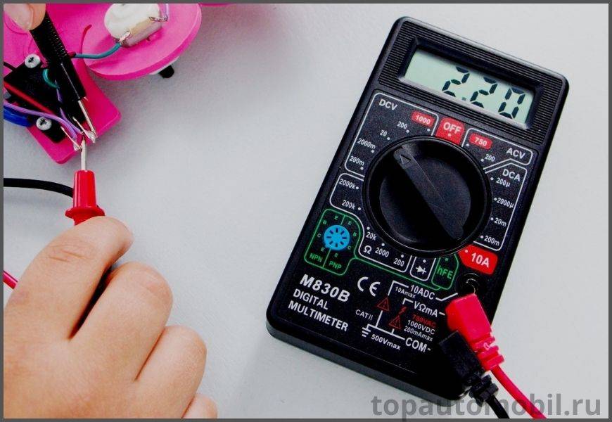 На этом этапе мультиметр необходимо подключить к минусовому и плюсовому выводам, а прибор настроить на измерение уровня сопротивления. Несмотря на то, что устройства разных автомобилей характеризуются разными значениями уровня сопротивления, показатель колеблется в диапазоне от 0,4 — 2 Ом.