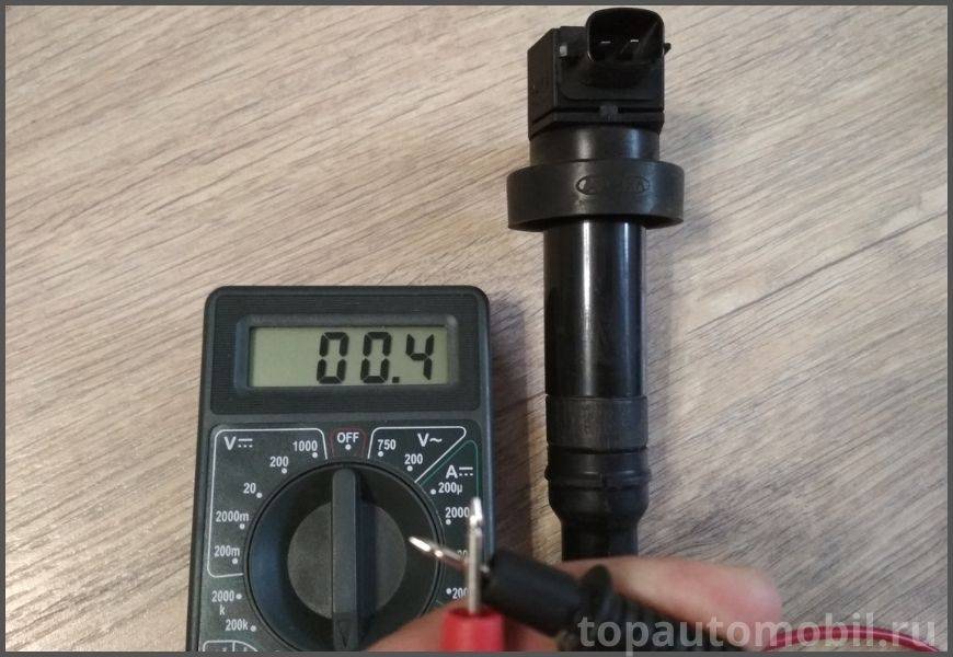 Проверка катушки зажигания мультиметром в режиме Омметра во вторичной обмотке.