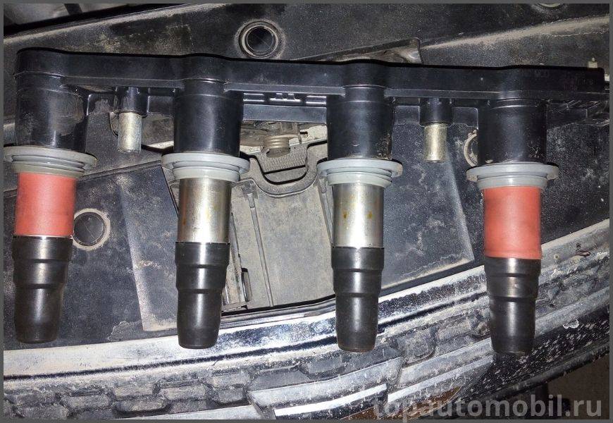 Первое, что проводят, чтобы понять состояние катушки зажигания – их осматривают зрительно. Для этого придется снять КЗ с применением торцевого ключа на 10 либо Torx E8.