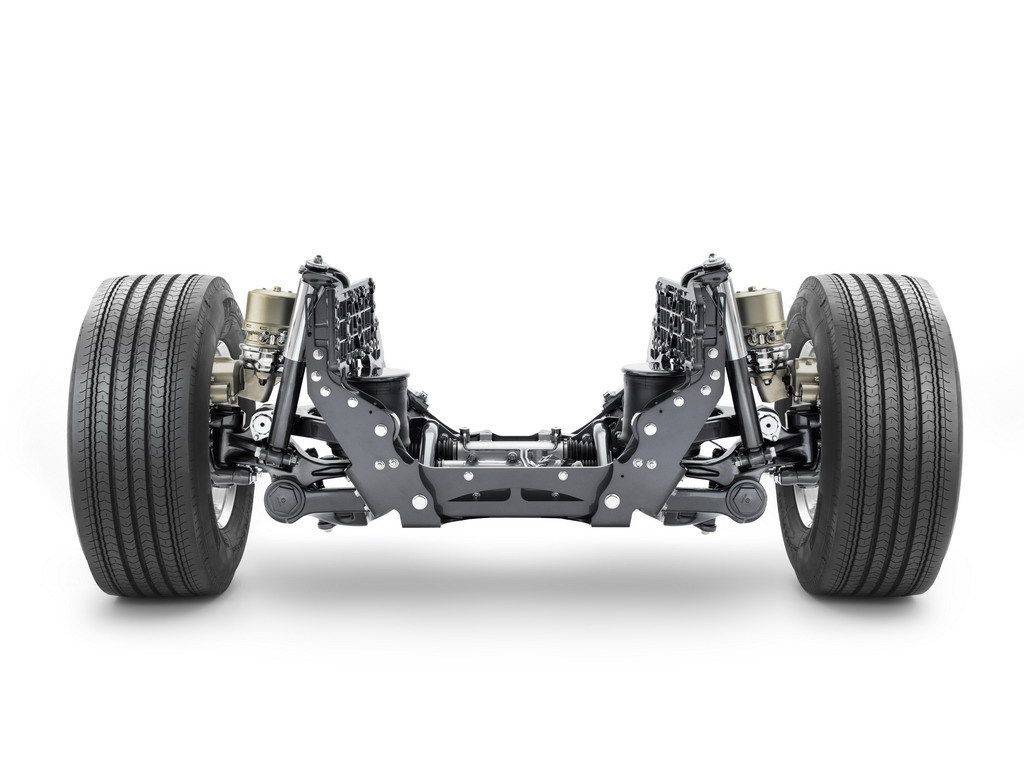 Это механическая подвеска с упругими элементами — листовыми рессорами. Преимуществом схемы считают устойчивость к перегрузкам и плохим дорожным покрытиям.