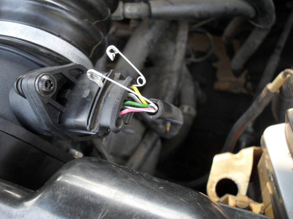 - Далее, откройте капот и найдите место установки ДМРВ. От регулятора нужно отсоединить штекер с проводкой.