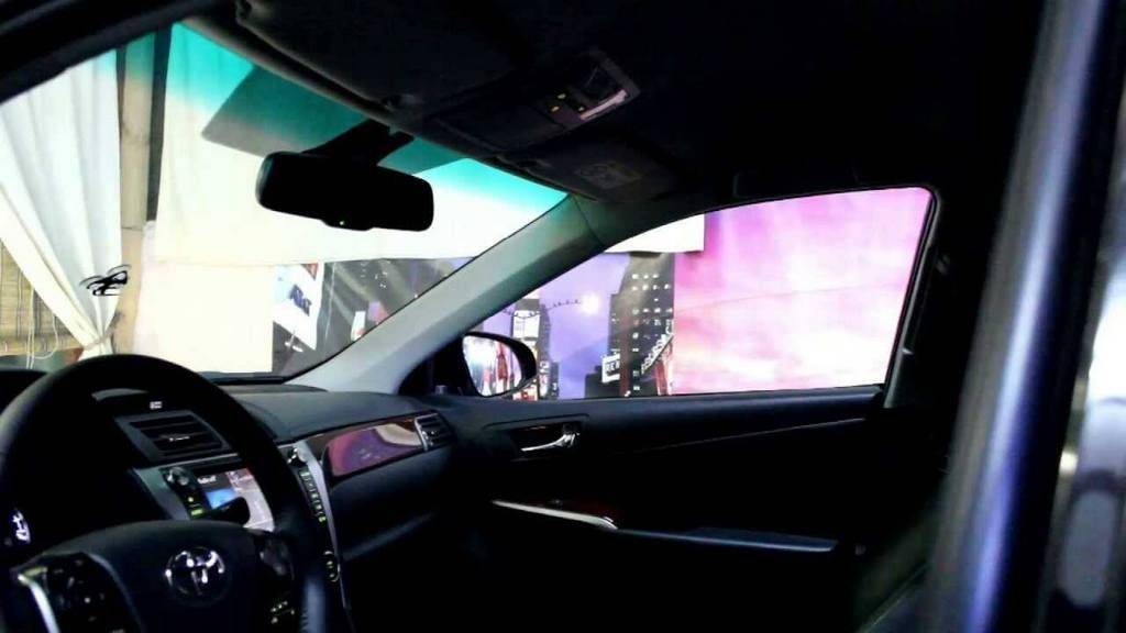 Еще один инновационный подход – это использование упомянутого выше смарт-стекла. Стекло покрывается технологичной пленкой, на которую поступает электрический ток. Процесс нанесения такого покрытия идентичный обычной тонировке, с той только разницей, что в конце пленку нужно подключить к бортовой сети. Вырабатываемых ею 12 Вт достаточно для работы усовершенствованного стекла. Когда на пленку не подается ток, ее пропускная способность минимальная. При подаче тока она меняет свою структуру, за счет чего и покрытие становится прозрачным. Для оптимизации показателей прозрачности функционалом предусмотрен соответствующий контроллер напряжения.