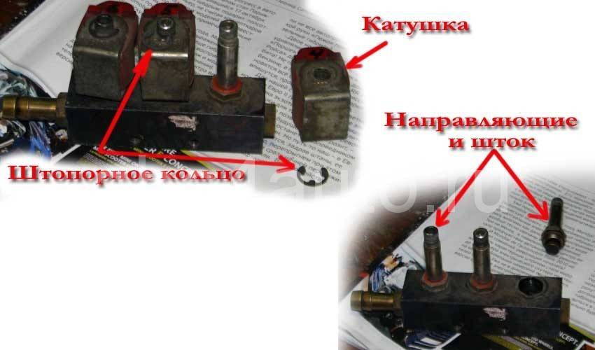 Если сам шток имеет удовлетворительный вид, можно заменить только резинку и пружину (также в случае изношенности), для этого острым предметом (шилом) извлечь старую резинку из штока и поместить на ее место новую. Если же пробег у инжекторов значительный — следует также произвести замену штока.