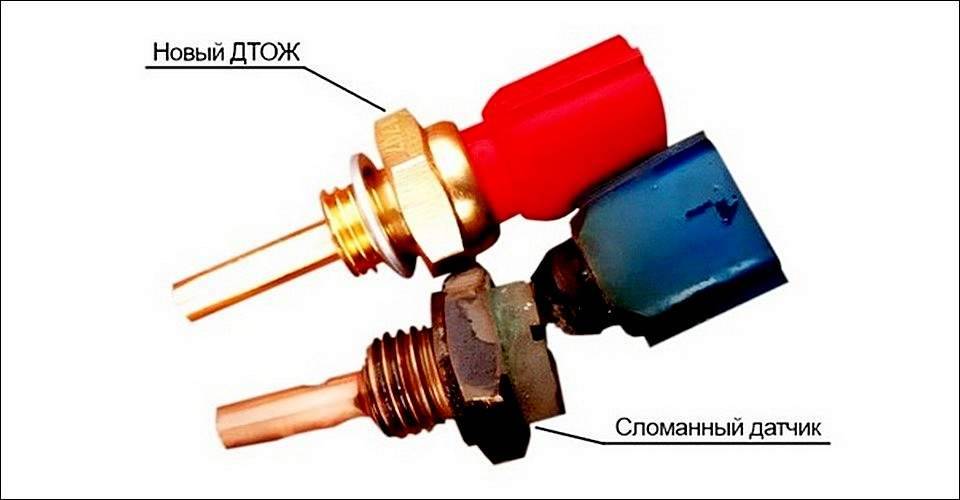 Этот показатель не считается достоверным, если в автомобиле присутствуют одновременно основной и дополнительный датчики. В этом случае на неисправность точнее укажет окисление проводки или выход из строя дополнительного датчика. Основные признаки неисправности ДТОЖ следующие: