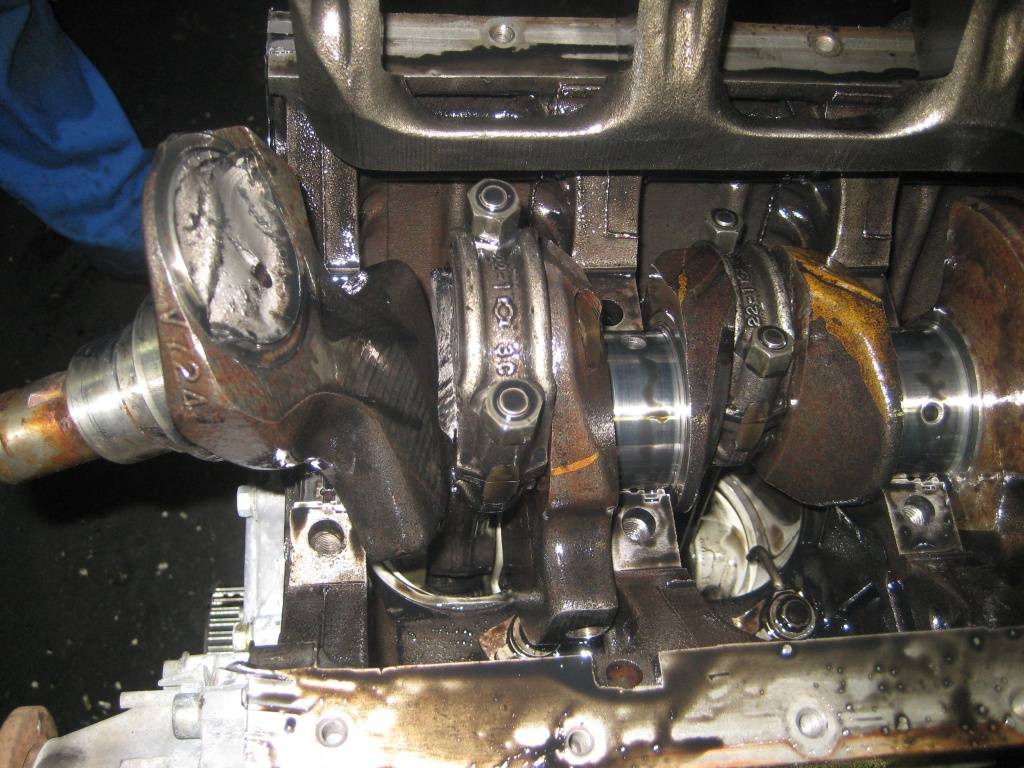 Классический способ такой: двигатель разбирается, затем оценивается степень внутреннего разрушения и осуществляются все необходимые работы. Почти всегда внутренние элементы ДВС повреждаются на 30% или более. На вскрытом агрегате бывает хорошо видно следующее: