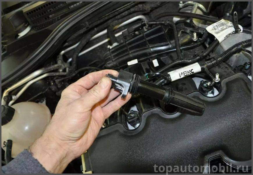 Первое, что проводят, чтобы понять состояние катушки зажигания – их осматривают зрительно. Для этого придется снять КЗ с применением торцевого ключа на 10 либо Torx E8.