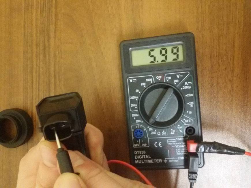 Показатель напряжения не должен быть менее 12 В. При обнаружении меньшего значения, приходится сделать вывод о неисправности проводов питания или ЭБУ.