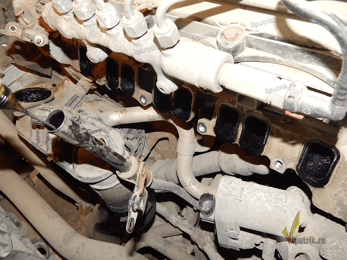 Любым способом убираем накопившийся мусор в местах установки свечей (в нишах, где они ввернуты).