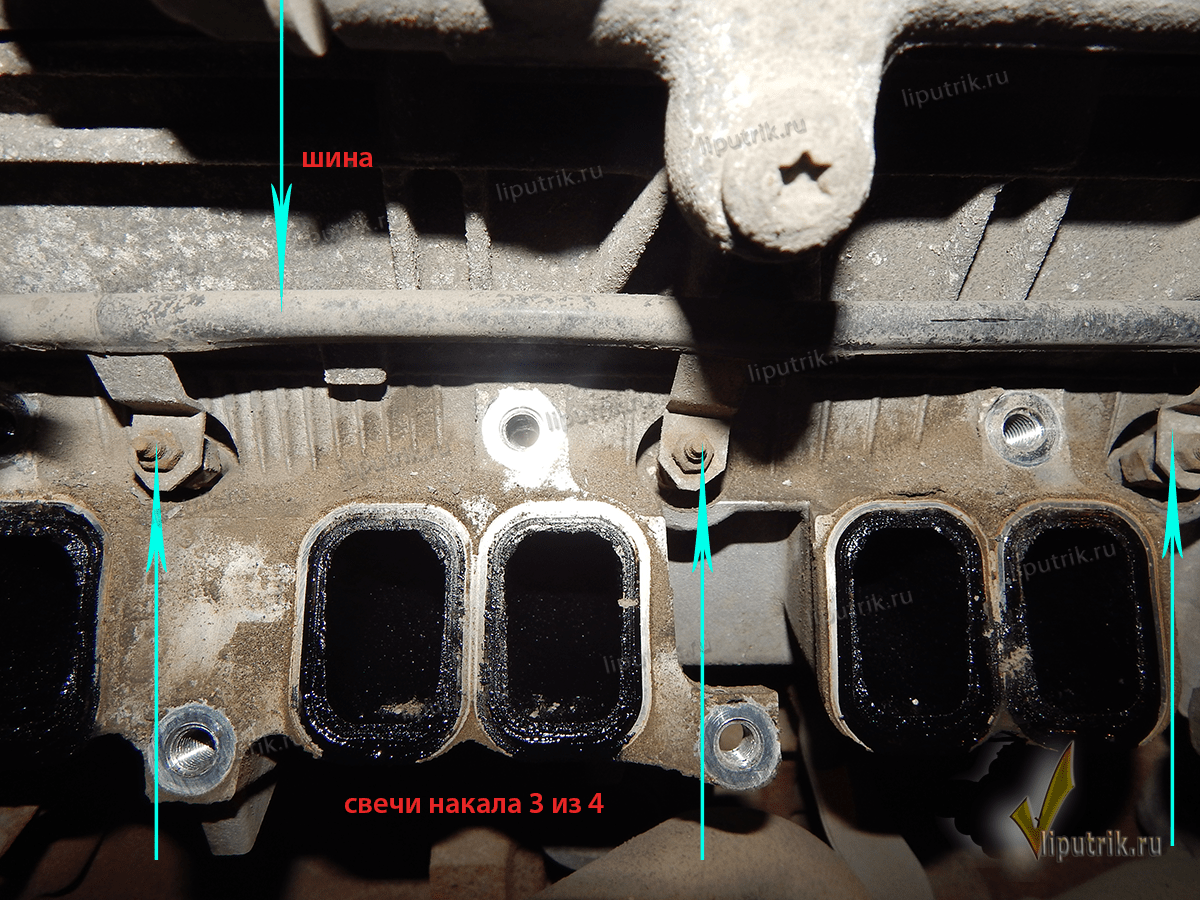 После снятия коллектора у нас открыт доступ к свечам накаливания.