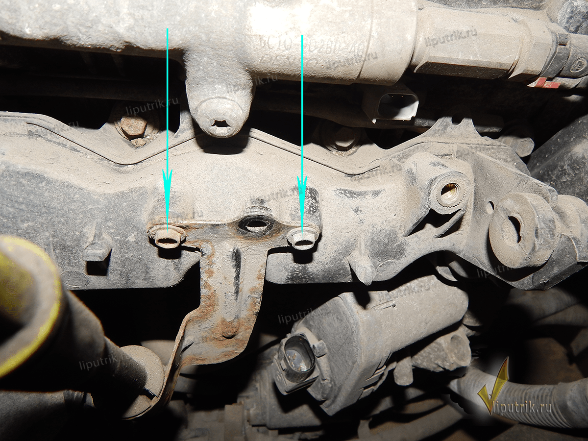 Откручиваем болты крепления масленого щупа, отводим в сторону (он легко проворачивается).
