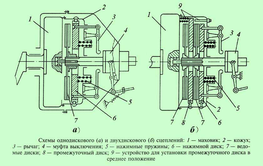 Относительно количества ведомых дисков, то помимо однодискового есть также двухдисковые и многодисковые сцепления.