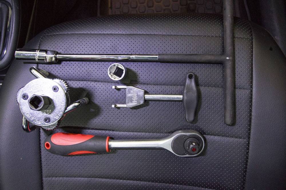 Как только вы её снимете, вы сразу сможете увидеть поддон картера. Именно на нём вы обнаружите сливную пробку. Мы думаем, что вы уже и сами догадались, что эту пробку нужно открутить. Голыми руками вы вряд ли сможете выполнить такую манипуляцию, поэтому предлагаем вам воспользоваться ключами.