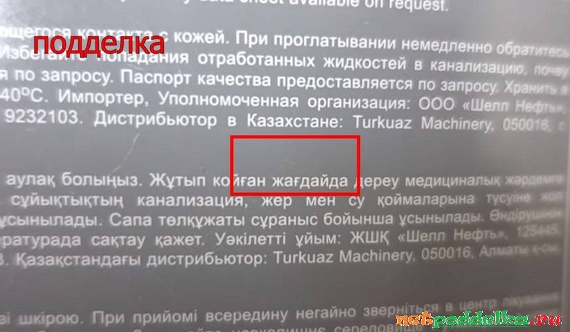 Далее рассмотрим этикетку изделия как один из самых важных элементов защиты масла от подделки. Поддельную наклейку выдаст неровное размещение на канистре, наличие пузырей. К тому же, такую этикетку можно поддеть ногтем или другими подручными средствами