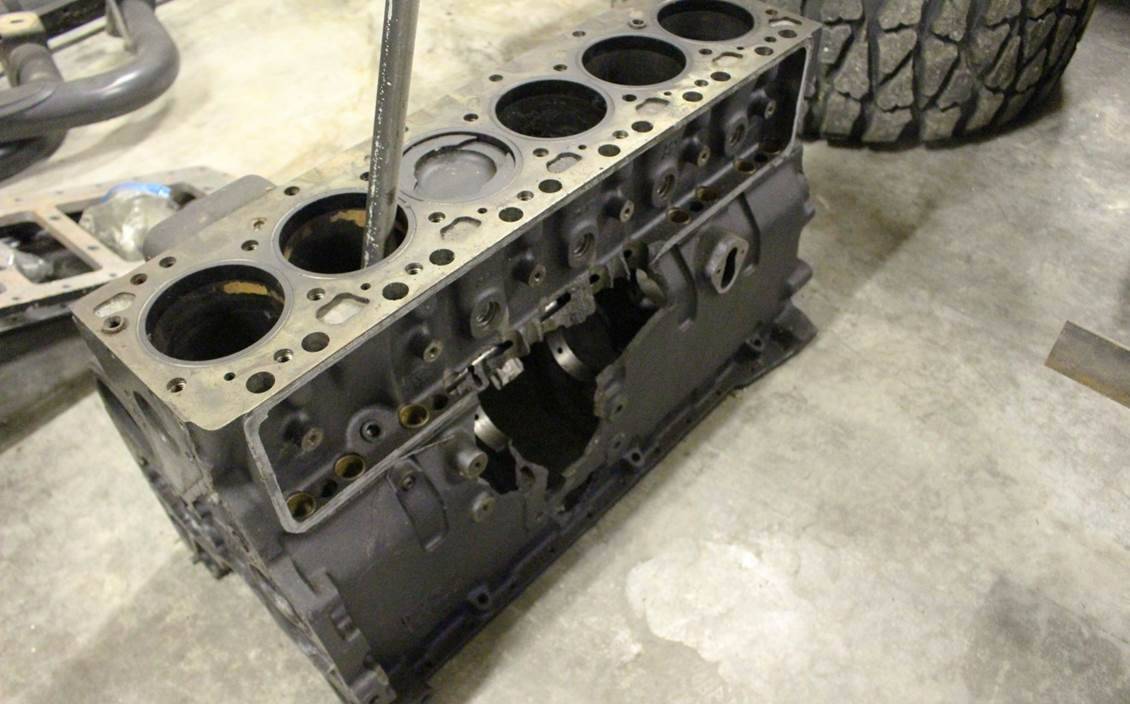 Последствия ЧП: пробитая оборвавшимся шатуном стенка блока