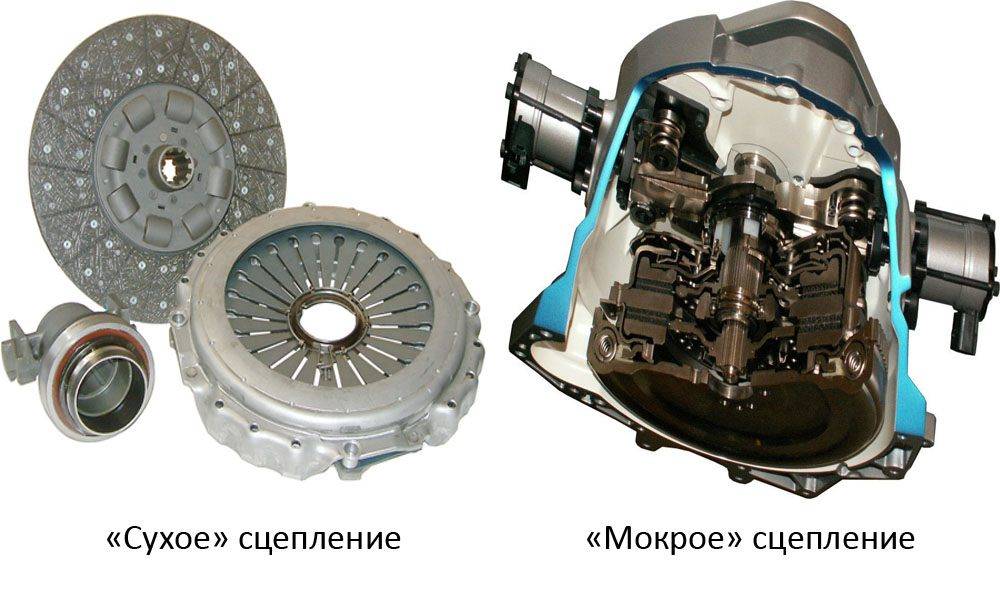 - по принципу функционирования: «мокрое» или «сухое» («сухие» сцепления являются наиболее распространенными);
