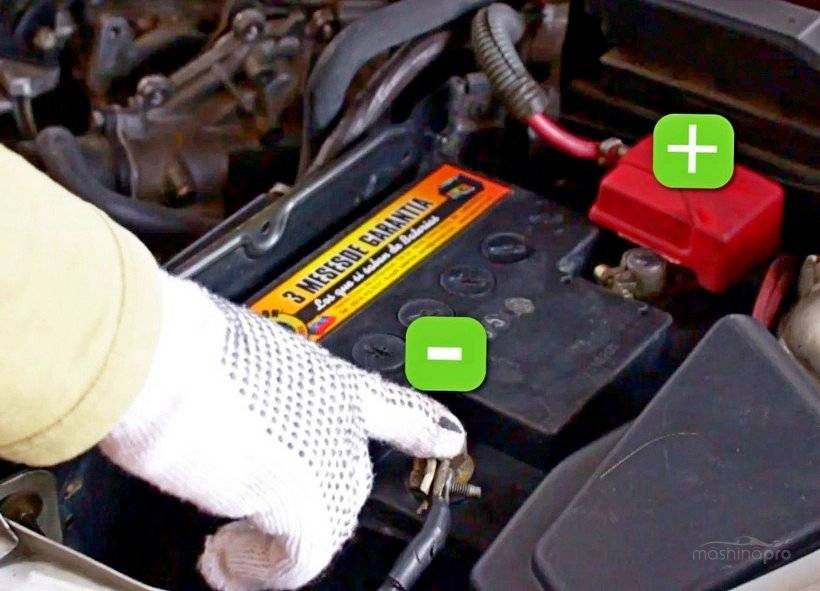 - Убедиться, что клеммы чистые, и в первую очередь снять соединение на массу.