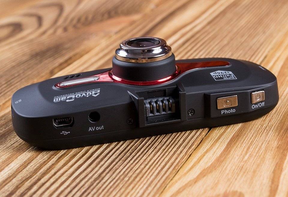 Тут же находятся две кнопки: Power и Photo, обе выполняют разные функции в зависимости от режима съемки. При удерживании в течение двух секунд Power включает и включает видеорегистратор, а при коротком нажатии по время видеозаписи активирует LED-подсветку. Клавиша Photo во время видеозаписи или в режиме ожидания делает мгновенное фото, а в режиме просмотра роликов выполняет функцию Delete (то есть удаляет записи).
