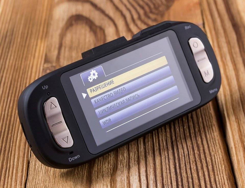 На противоположной стороне регистратора находится крупный 2,7-дюймовый экран и две сдвоенные клавиши управления.