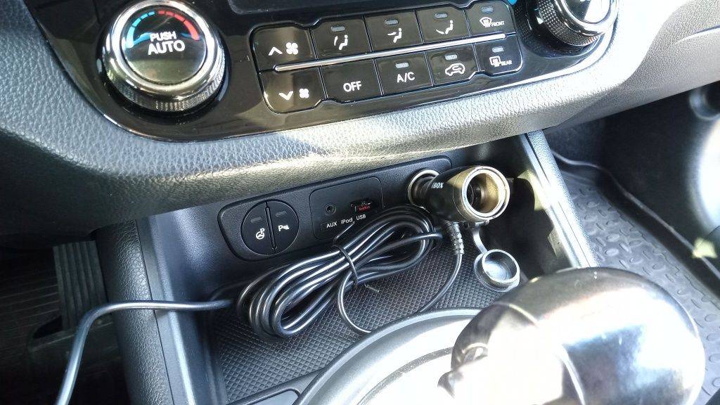 Но мне никогда не нравились висящие провода, поэтому я проложил кабель питания над лобовым стеклом и под обшивкой левой стойки и подключил блок питания через отдельно приобретенный переходник через блок предохранителей в салоне. Получилось все довольно аккуратно и без бросающихся в глаза проводов. Само устройство я установил перед зеркалом заднего вида, подобрав высоту примерно на уровне глаз.