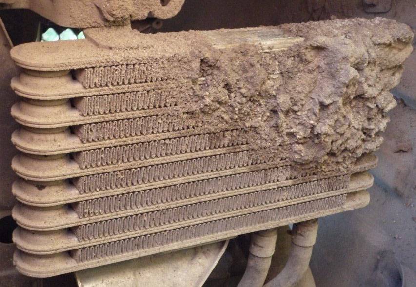 С целью обеспечения оптимального терморежима масла на большинстве автомобилей дополнительно к основному теплообменнику подсоединяется еще один радиатор. Его крепят в передней зоне моторного отсека до конденсатора климатической системы. Сквозь воздуховоды, размещенные в бампере, он часто забивается различным мусором — тополиным пухом, листьями, грязью, гравием, мошкарой и т. п. Первым проявлением его критического загрязнения является сильный перегрев при передвижении на больших скоростях. Раз в два года необходимо очень тщательно его чистить и мыть. Лучше всего с отсоединением бампера. Также рекомендуется прикрыть защитными сетками наружные входы воздуховодов, так как радиатор подвержен повреждению от всего, что летит из-под колес.