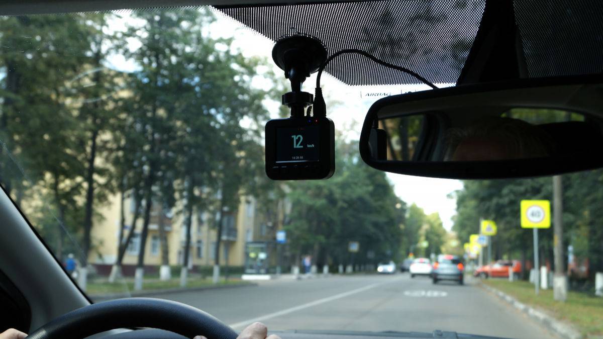 Там действительно есть укромное местечко для установки, но, на наш взгляд, оно расположено очень далеко от водителя, чтобы оперативно управлять камерой, при этом его экран закрывается зеркалом. Гораздо удобнее он встает либо в левом углу лобового стекла, либо слева у зеркала.