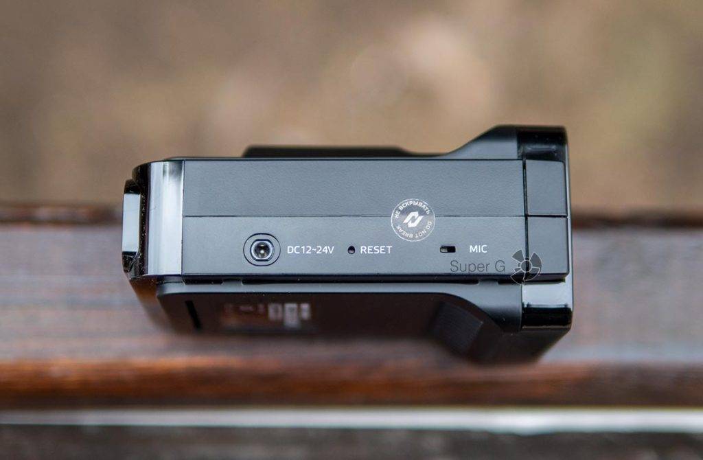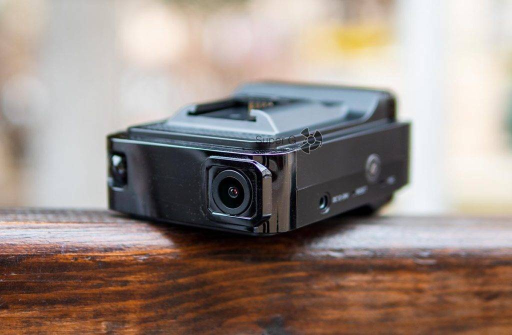 На внешней стороне устройства размещен объектив широкоугольной камеры с разрешением Full HD и углом съемки 135 градусов (1920×1080 точек, 30 кадров в секунду), линза детектора лазерного излучения и датчик, фиксирующий работу радаров.