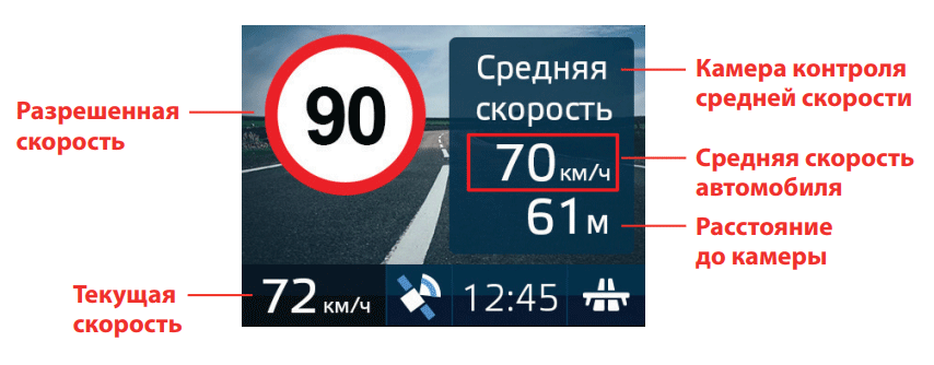 При проезде участков, на которых радары контролируют среднюю скорость средствами фотофиксации, не страшно пролететь первую камеру с превышением – страшно не снизить после этого скорость до второй камеры. X-Cop 9100s в таком случае покажет вам и вашу текущую среднюю и ограничение на данном участке, чтобы вы могли затормозить и избежать штрафа при проезде второго пункта контроля.