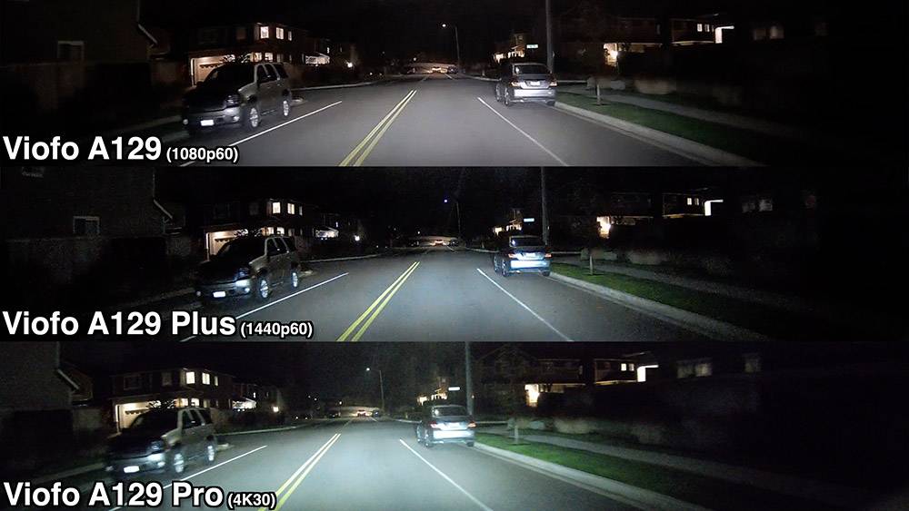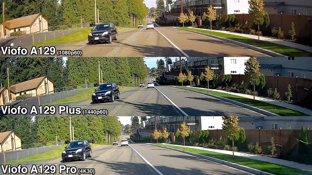 The main advantage of the lower res A129 and A129 Plus is that they let you record at 60 fps instead of 30 fps, leading to the dashcam doing a better job of freezing motion like cars driving by. Additionally, the A129 and A129 Plus have a slightly larger aperture compared to the A129 Pro (f/1.6 instead of f/1.8) so their lenses let in a little more light.
