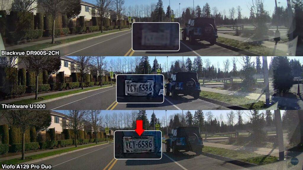 As you can see, no dashcam can nail everything perfectly, even when driving slowly through a parking lot, but the 60 fps cameras do a slightly better job of freezing the movement. Nevertheless, all three dashcams do a great job of capturing a general overview of what’s going on around you.