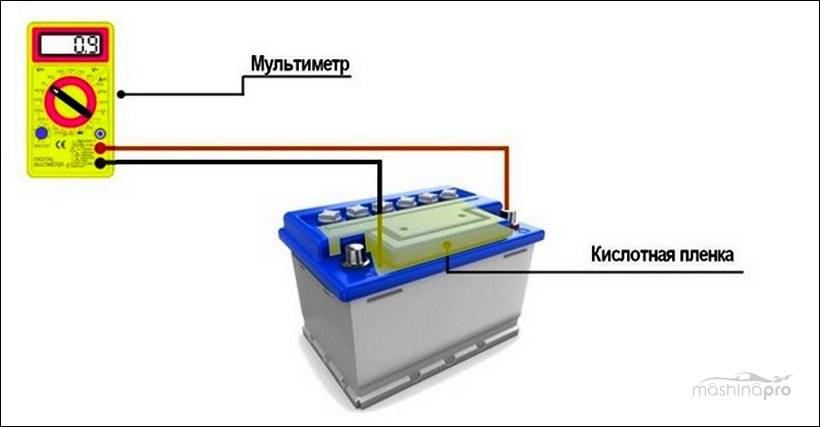 - Саморазряд, вызываемый парами, выделяемыми аккумулятором, которые оседают на корпусе батареи, создавая замыкающую «дорожку» между плюсовым и минусовым выводом.
