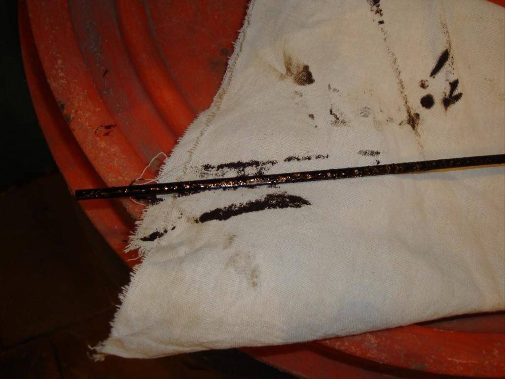 Щуп для проверки уровня смазывающего материала с остатками черного масла