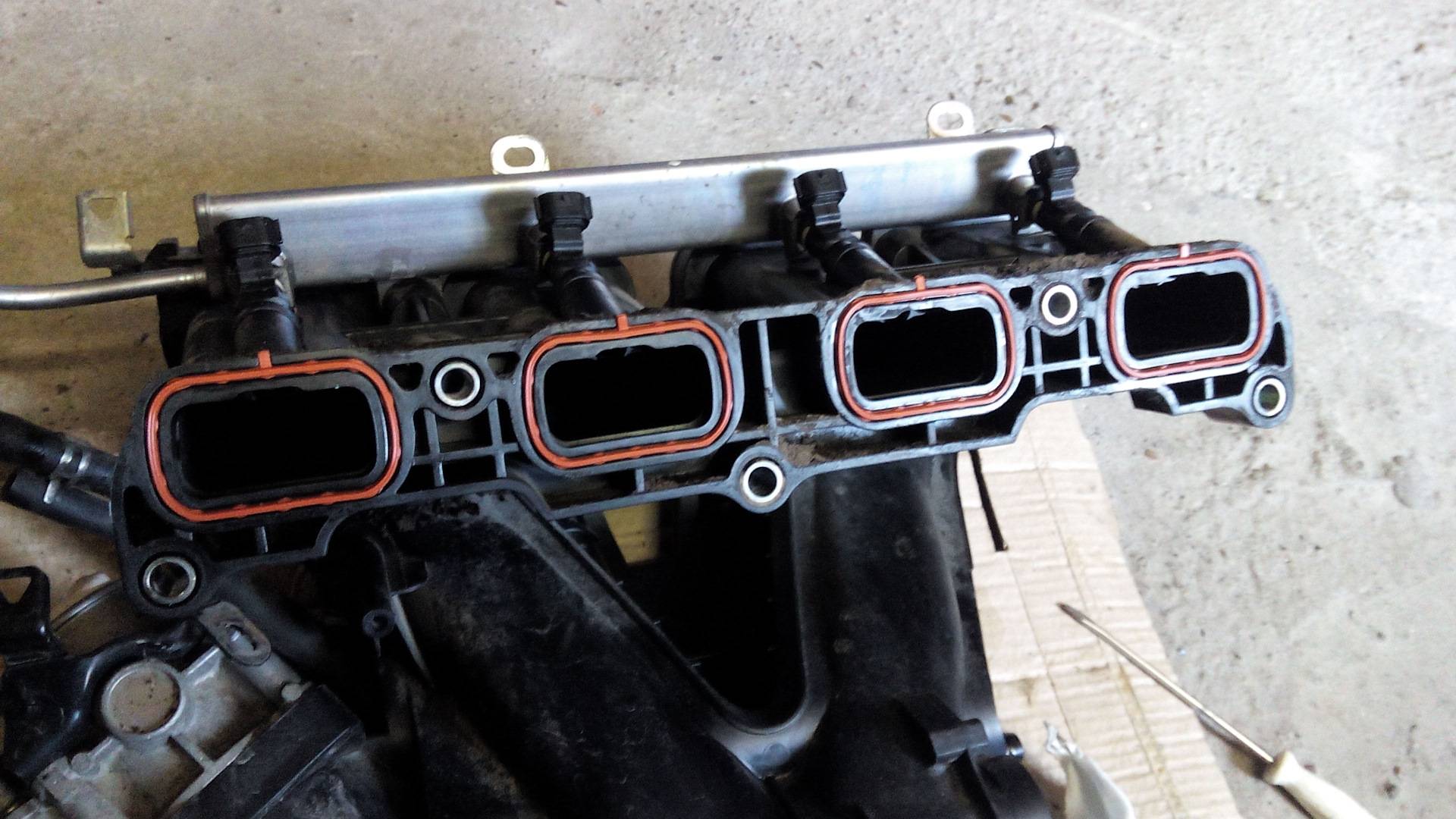 - Если впускной коллектор изготовлен из пластика и потрескался либо деформировался, то во время ремонта зачастую шлифуют прилегающие поверхности, запаивают трещины. Можно и сразу заменить коллектор полностью. Принимаемые меры зависят от типа повреждений, которые удалось найти.