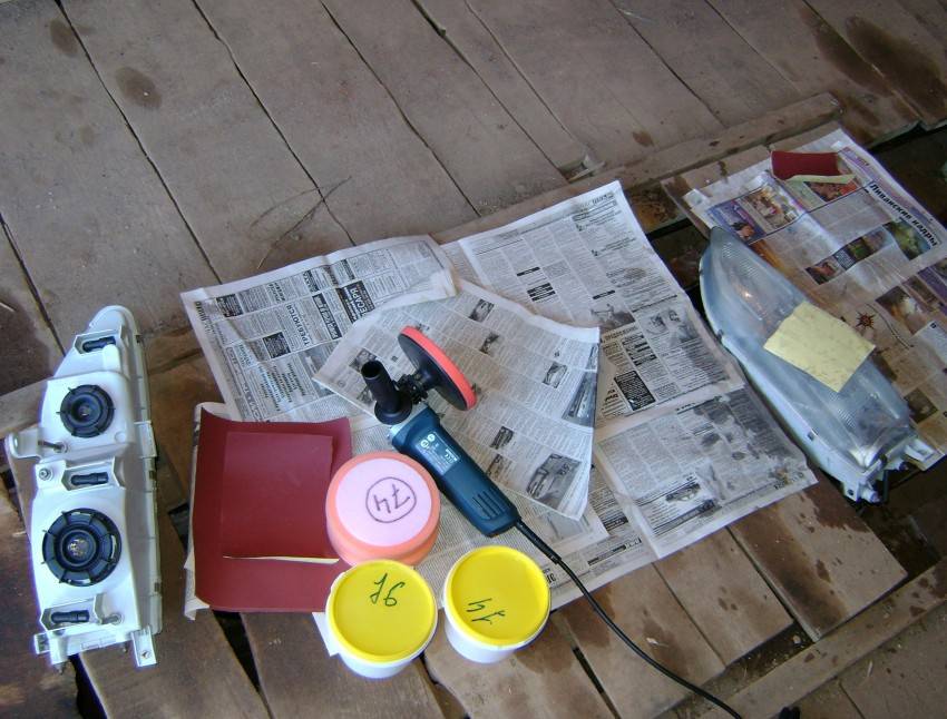 Для стеклянных фар лучше всего использовать алмазную пасту, пластик же хорошо полируется при помощи наждачной бумаги и альтернативных веществ