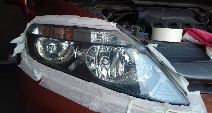 Первое, что нужно сделать, это вымыть и просушить фару. Чтобы избежать попадания грязи и частиц пыли, они могут оставить большие царапины или опасность. Затем используйте малярную ленту, чтобы закрыть область вокруг рабочей зоны. Избегать удара или повреждения поверхности, которая не будет обрабатываться.