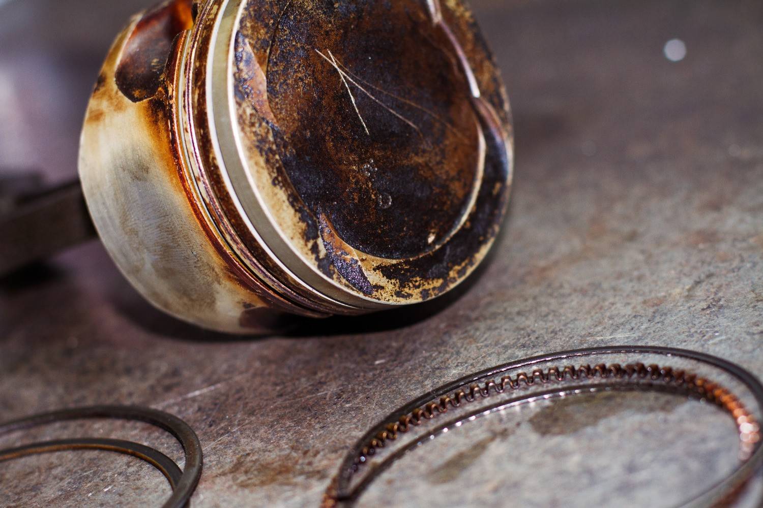 Более сложная проблема — неплотное прилегание поршневых колец. Кольца могут быть перегреты (обычно они расчитаны на температурный режим 180-200 °С), что приведет к их необратимой деформации и ухудшению показателей упругости, обеспечивающие надежность и эффективность работы. Вторая по распространенности проблема — коксование – то есть залипание в резуьтате образования несмываемого налета. Причиной коксования обычно становится нарушение интервала замены масла в сочетании с долгим простоем двигателя, к примеру, в течение года. Залипшие кольца не будут полноценно уплотнять прилегающие к стенкам цилиндра поршни, это отзовется не только возросшим масляным аппетитом, но и потерей компрессии в цилиндрах. Эта беда иногда вылечивается специальными составами. Так же возможно разрушение межклапанных перемычек поршня, причиной будет его термическая усталость, а следствием повышенный угар масла. Но определить поможет только вскрытие двигателя.