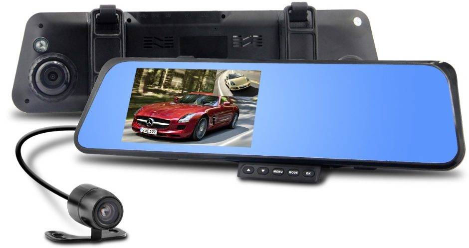 Возглавляет рейтинг лучших зеркало с двумя камерами Car DVR. Это компактный видеорегистратор с камерой и антирадаром. Он фиксирует все, что происходит на дорогах.