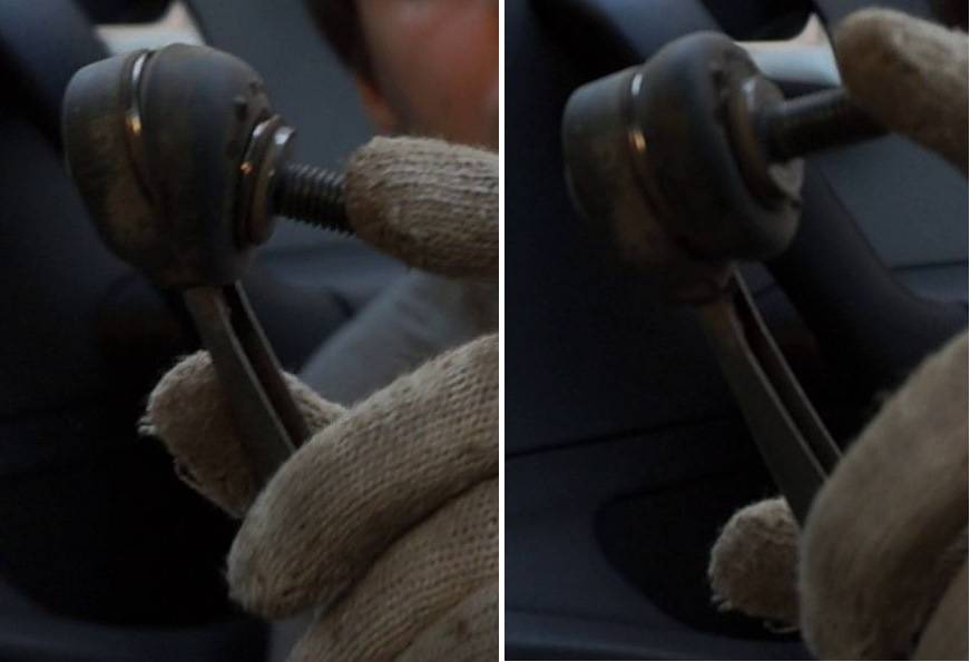 На тех же стойках, где используются шаровые шарниры, именно они и являются слабым местом. Со временем появляется выработка между шаровым пальцем и корпусом шарнира, из-за чего образуется зазор между ними.