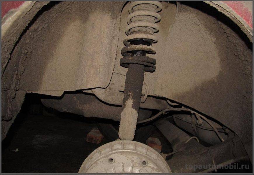 Наиболее заметный «симптом» — протечка масла. Под автомобилем могут появиться маслянистые пятна. Если с другими элементами все в порядке, стоит заменить стойки. Удостоверьтесь, что на них нет внешних повреждений: каких-либо трещин или сколов.