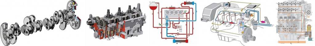 Штатный автомобильный двигатель состоит из 2-х механизмов и 5-ти систем.
