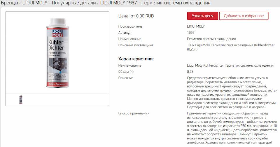 Однако китайского GELORAD хватило на 4 месяца и он потек по стыку верхней крышки час ремонтного настал, но вот шатаясь по Метро увидел такое средство от LIQUI MOLY part№1997.Так, отзыв по GELORAD — шлак