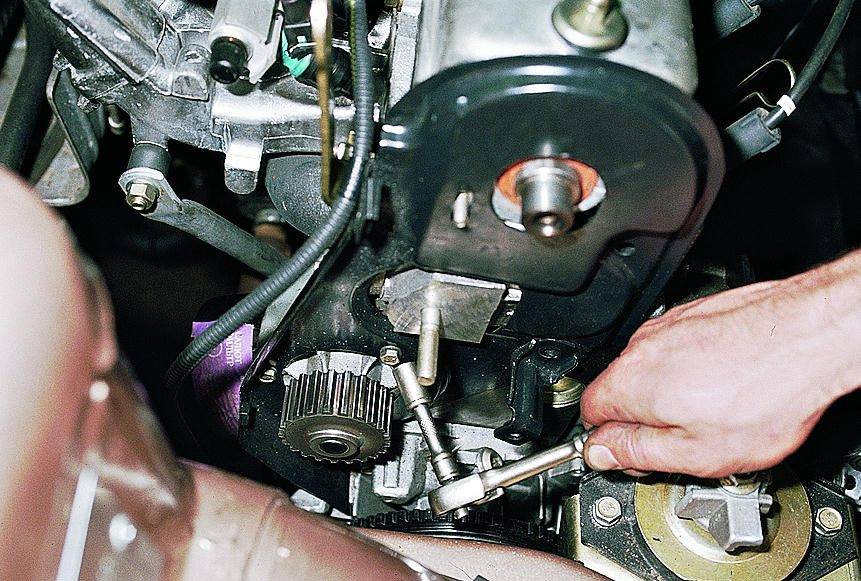 Для снятия помпы необходимо снять ролик натяжения, ремень ГРМ и звёдочку распредвала