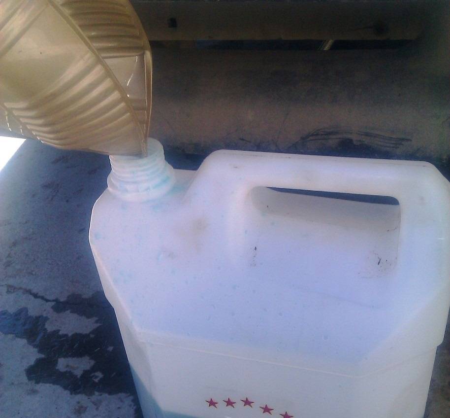 все аккуратно заливаем, для экономии и повторного использования тосола