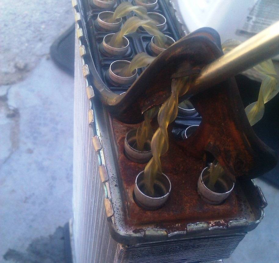 Обратите внимание на состояние патрубков — если вы видите, что они изношены или сильно забиты, на них есть следы повреждений, то лучше сразу замените их. Непосредственно радиатор фиксируется к корпусу отопителя при помощи трех саморезов — их нужно выкрутить, а само устройство — извлечь. После демонтажа устройство заменяется на новое, процедура сборки осуществляется в обратной последовательности.