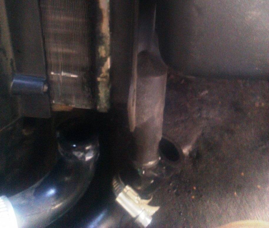 Откручиваем два хомута от радиатора, не забудьте подставить какую нибудь емкость, чтобы не залить салон тосолом! подставил опять то что попалось под руку, от пирога вроде.